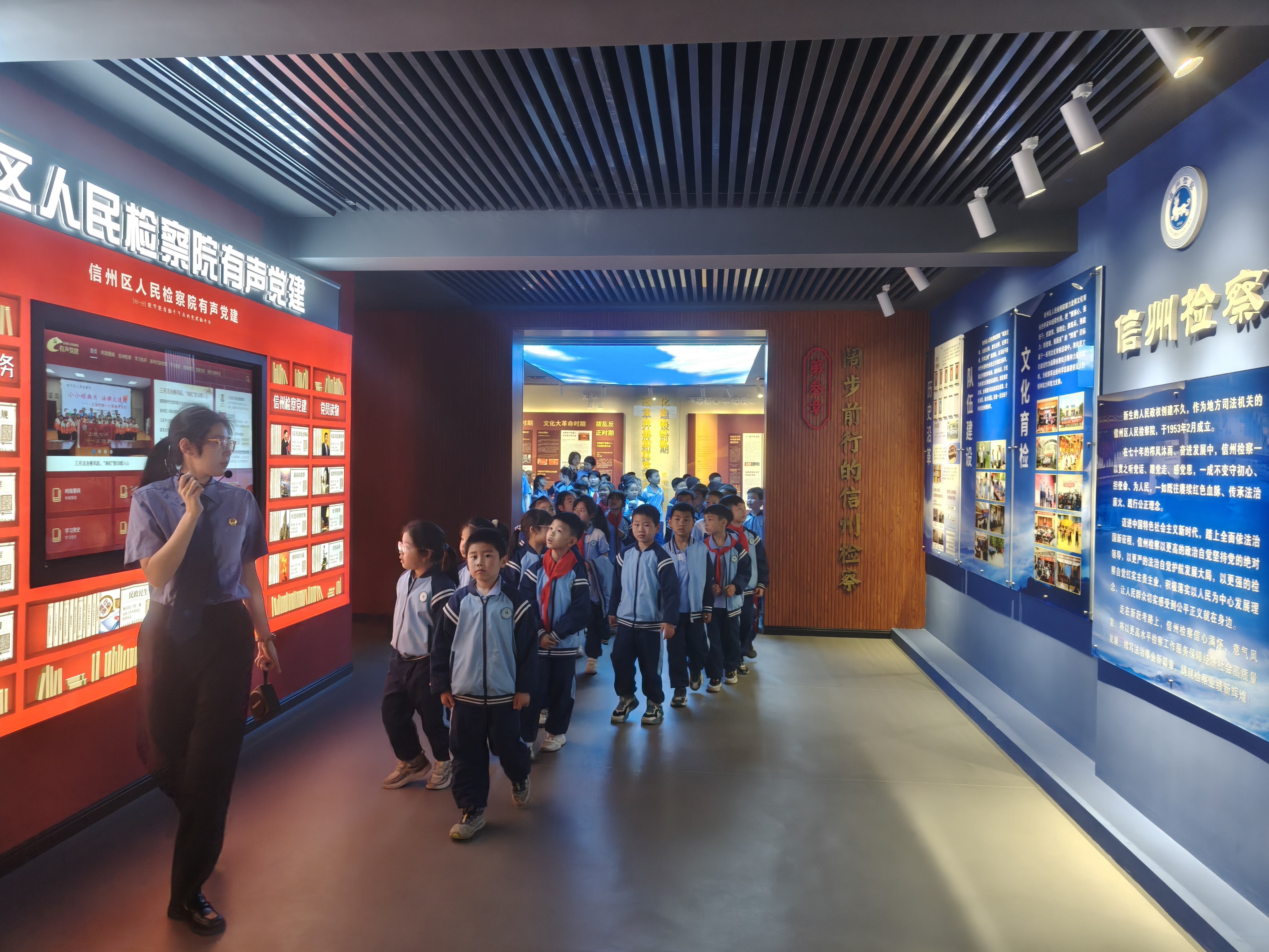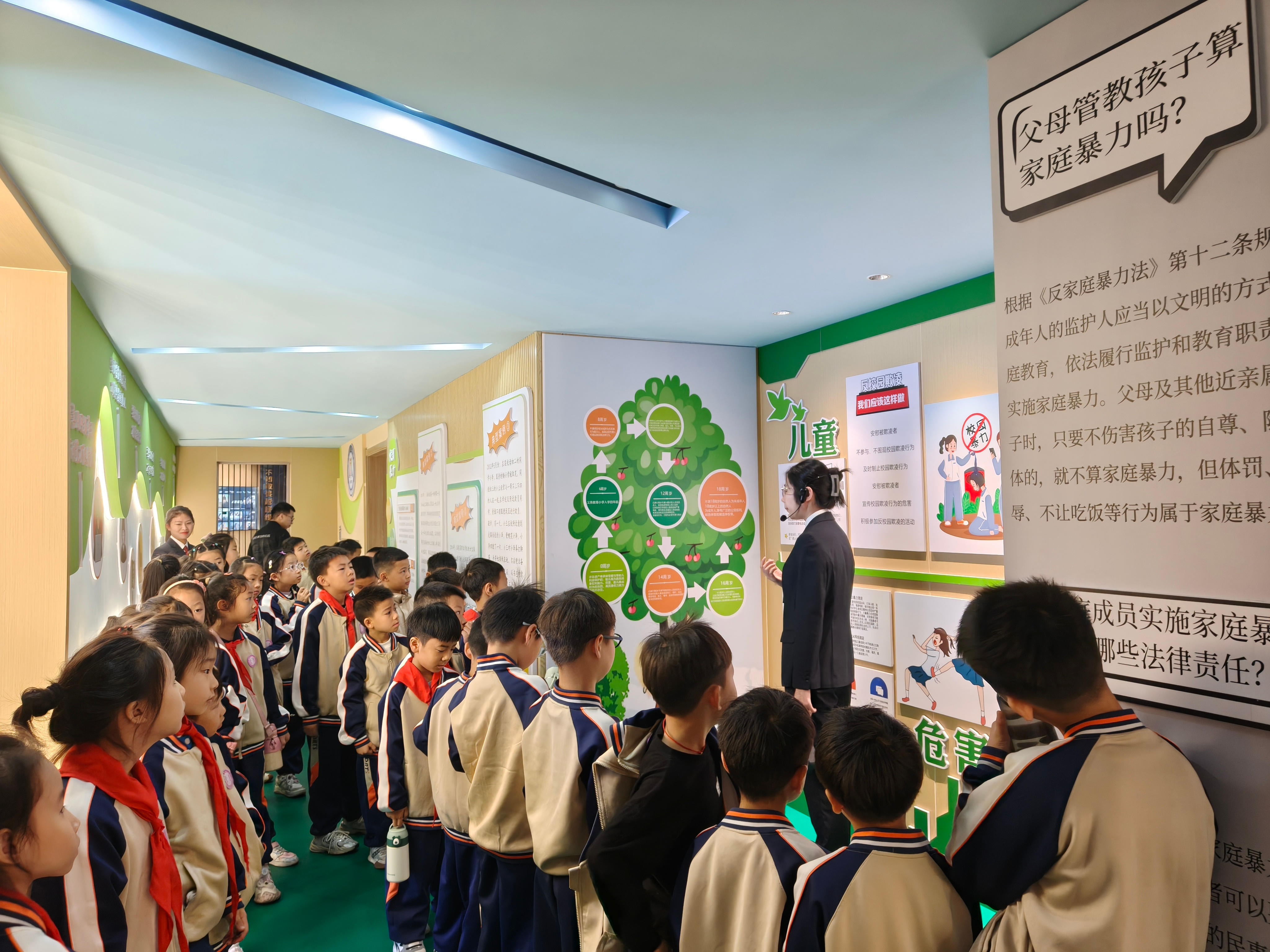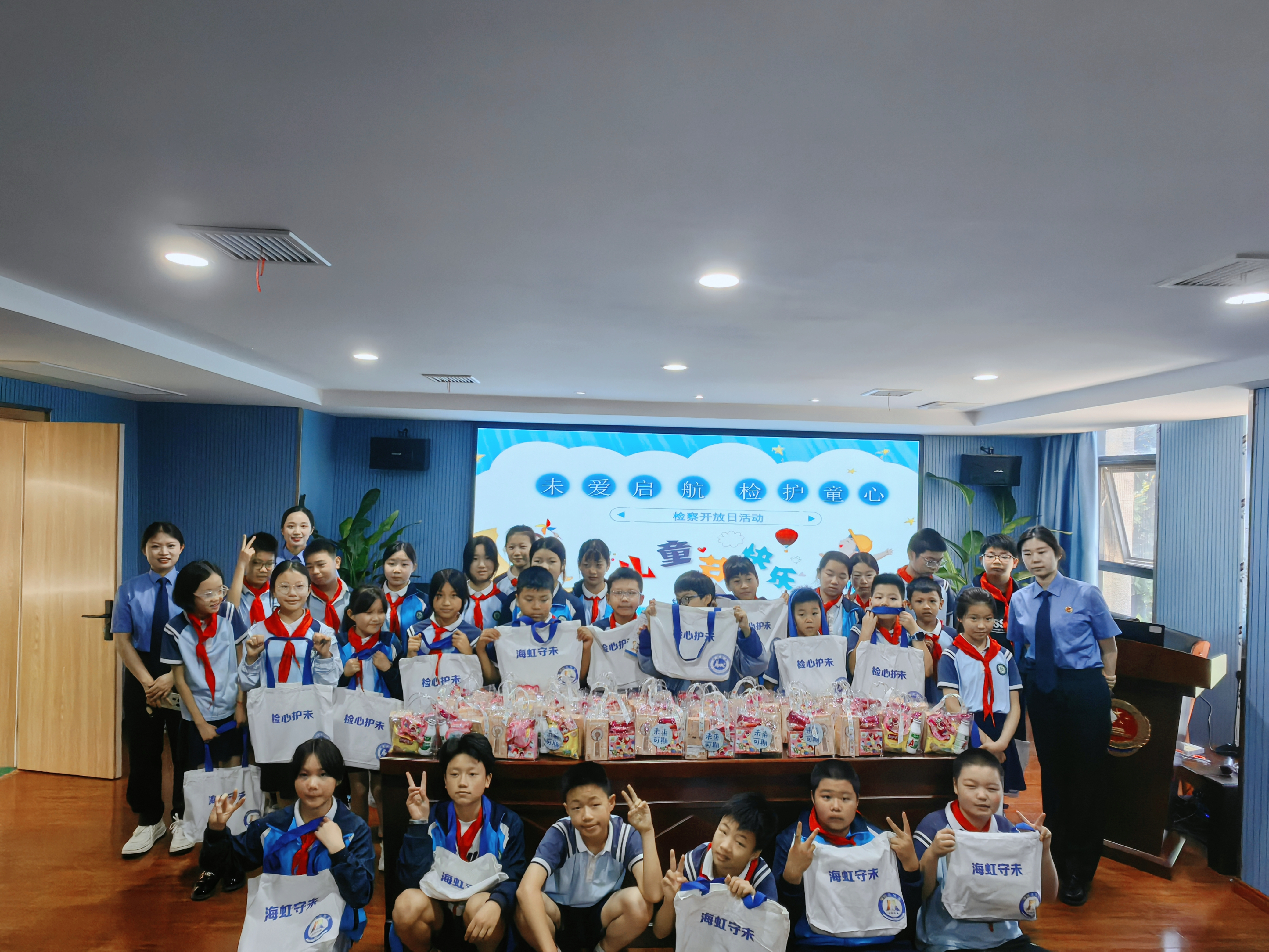 基地已陆续迎来辖区内多所中小学的学生代表。围绕未成年人保护的核心议题,我们先后开展了“未成年人犯罪预防”“防范性侵害”“远离毒品,拥抱青春”“面对欺凌,勇敢说‘不’”等一系列主题鲜明、内容生动的法治宣讲,通过持续创新的沉浸式体验,在青少年心中播撒法治种子,让“检察蓝”成为守护“红领巾”健康成长最温暖的底色。
