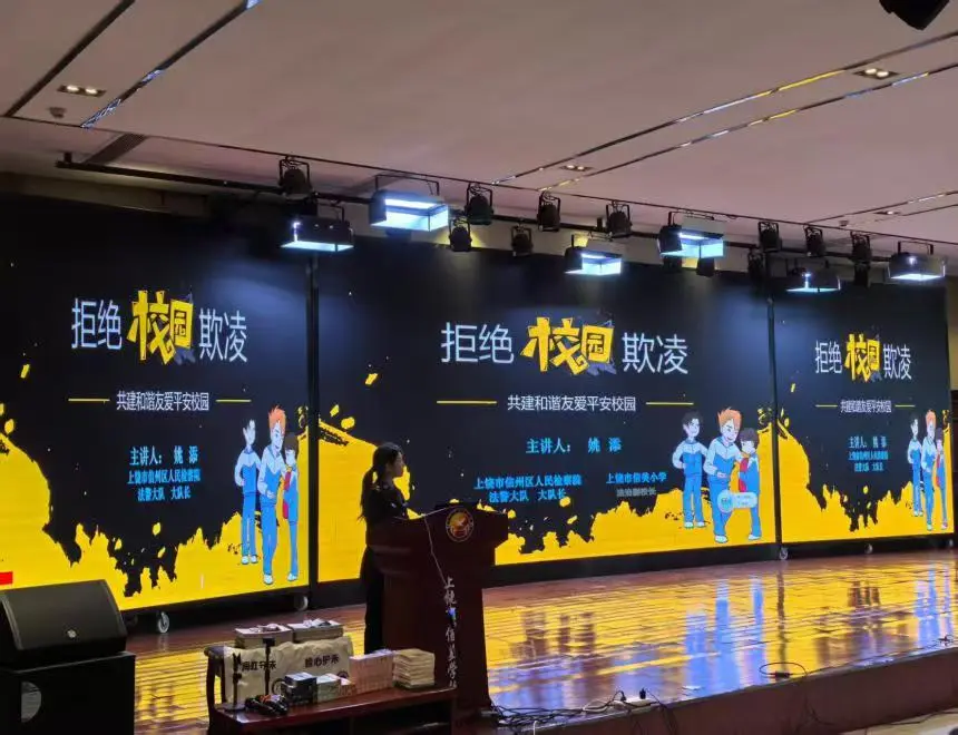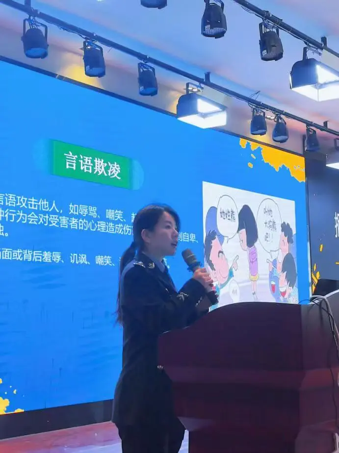 校园本应是书香萦绕、友爱相伴的成长乐园,然而校园欺凌的阴影却可能打破这份美好。2025年11月20下午,上饶市信州区人民检察院的法警大队大队长姚添来到了上饶市信美小学作为法治副校长给四年级的全体学生上了一堂别开生面的法治教育课。言校园欺凌等不良行为,不仅伤害同学的身心健康,更破坏了和谐的校园生态,我们必须高度警惕、坚决抵制。