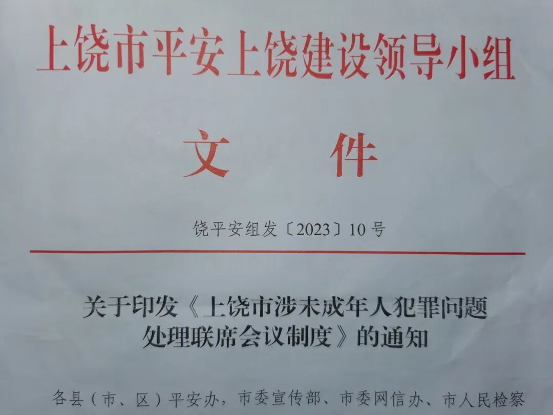 未成年人是祖国的未来、民族的希望。党和政府历来高度重视未成年人保护工作,为将未成年人保护和违法犯罪预防工作纳入基层社会治理框架,进一步加强部门统筹协调,形成工作合力,在市委的正确领导下、市平安上饶建设领导小组的统筹推动下,上饶市人民检察院会同市中级人民法院、市公安局、市妇联等30个单位联合建立了涉未成年人犯罪问题处理联席会议制度(以下简称联席会议制度)。