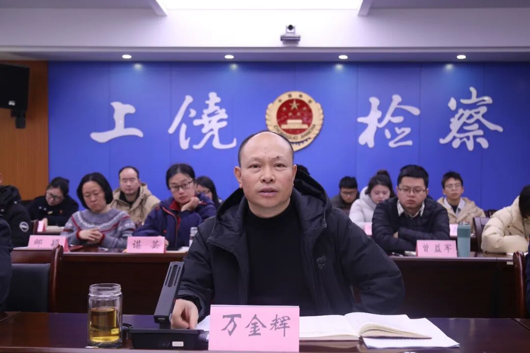 1月23日下午,市检察院召开2025年度机关基层党组织书记抓党建工作述职评议会。市检察院党组成员、政治部主任、机关党委书记万金辉对述职情况进行了现场点评并作总结讲话。市院机关各党支部书记、党务干部及部分党员群众代表参加会议。