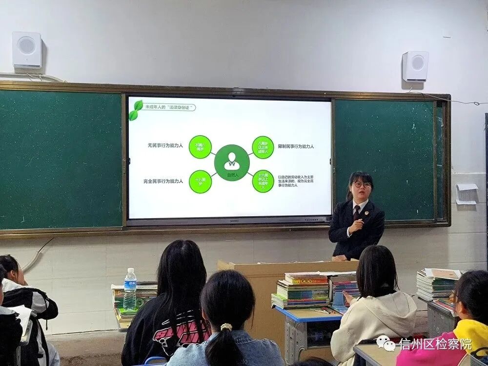 时逢我国第三个“民法典宣传月”,为推动落实最高检“一号检察建议”,深入贯彻“法治心育进千校,检爱同行护成长”活动要求,帮助青少年规范行为边界,助力提升青少年法治意识和法治素养,近日,信州区检察院持续深入推进“送法进校园”活动,赴辖区各个中小学开展了“民法典”主题法治宣传活动。