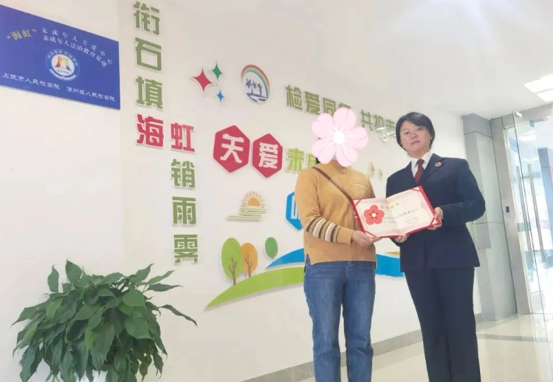 近日,上饶市信州区检察院为积极履行强制报告义务的医务人员蒋某某颁发荣誉证书。