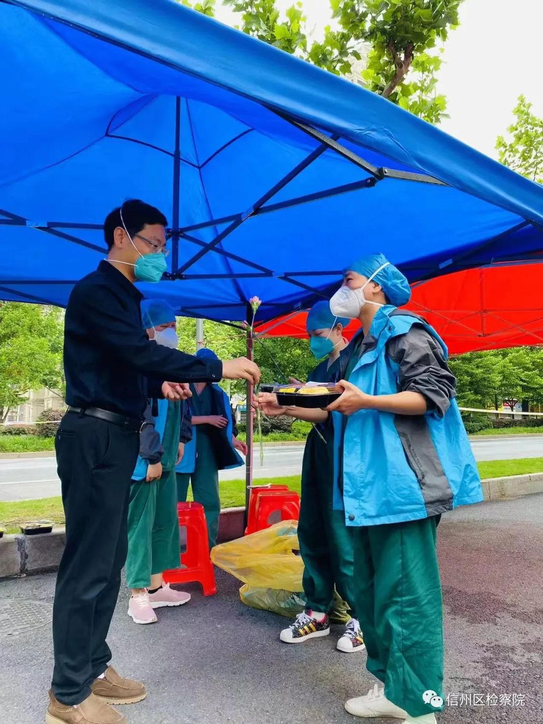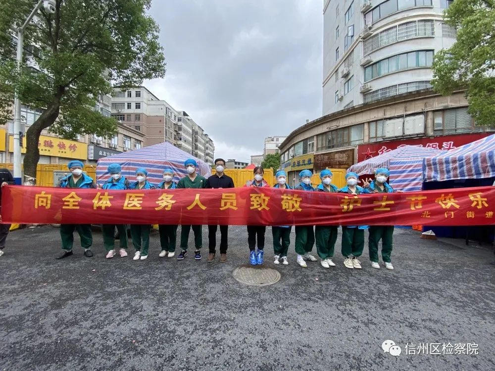 5月12日,今天是护士节。在上饶市信州区越都公寓,两个原本没有交集的职业在这里相遇,他们并肩作战、共抗疫情,让2022年的护士节变得特殊且有意义。