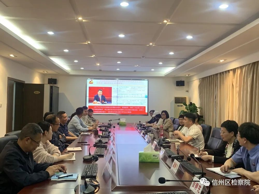 近日,信州区人大常委会副主任黄玉华来到信州区人民检察院宣讲习近平新时代中国特色社会主义思想,并召开学习会。该院全体班子成员、部门负责人及员额检察官参会,党组书记、检察长胡腾峰主持会议。