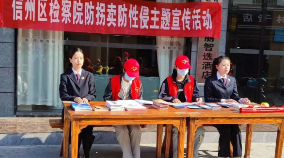 为充分践行党的二十大精神,进一步增强妇女儿童依法维护自身合法权益的意识,营造全区维护妇女儿童权益的良好法治氛围,近日,信州区检察院积极履职,由“巾帼文明岗”组建普法宣传小组,在辖区内开展了“防拐卖防性侵”为主题的法治宣传活动。