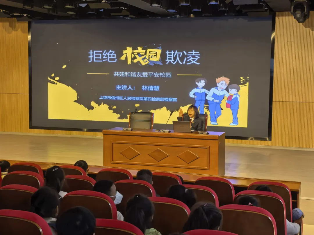 为进一步加强校园法治教育,增强学生的自我保护意识,营造和谐、友爱、平安的校园环境,2025年12月24日下午,上饶市信州区人民检察院检察官、上饶市稼轩小学法治副校长林倩慧为同学们带来了一场主题为“拒绝校园欺凌,共建和谐友爱平安校园”的专题教育讲座。